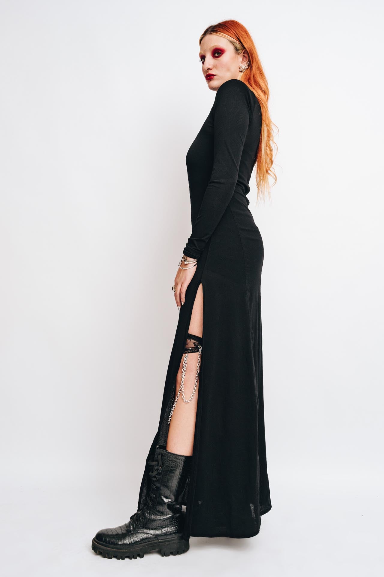 - outer dress: maxi dress with side slits.