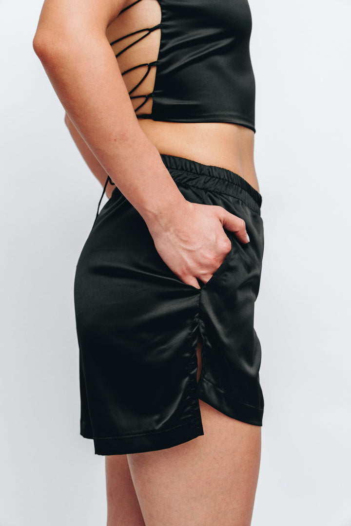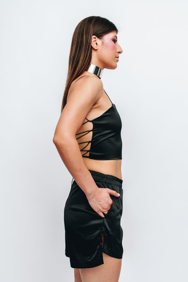 -ASYMMETRIC SHORTS WITH SIDE POCKETS