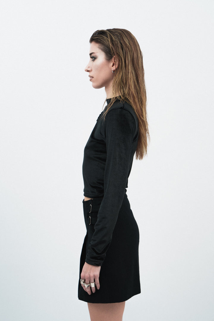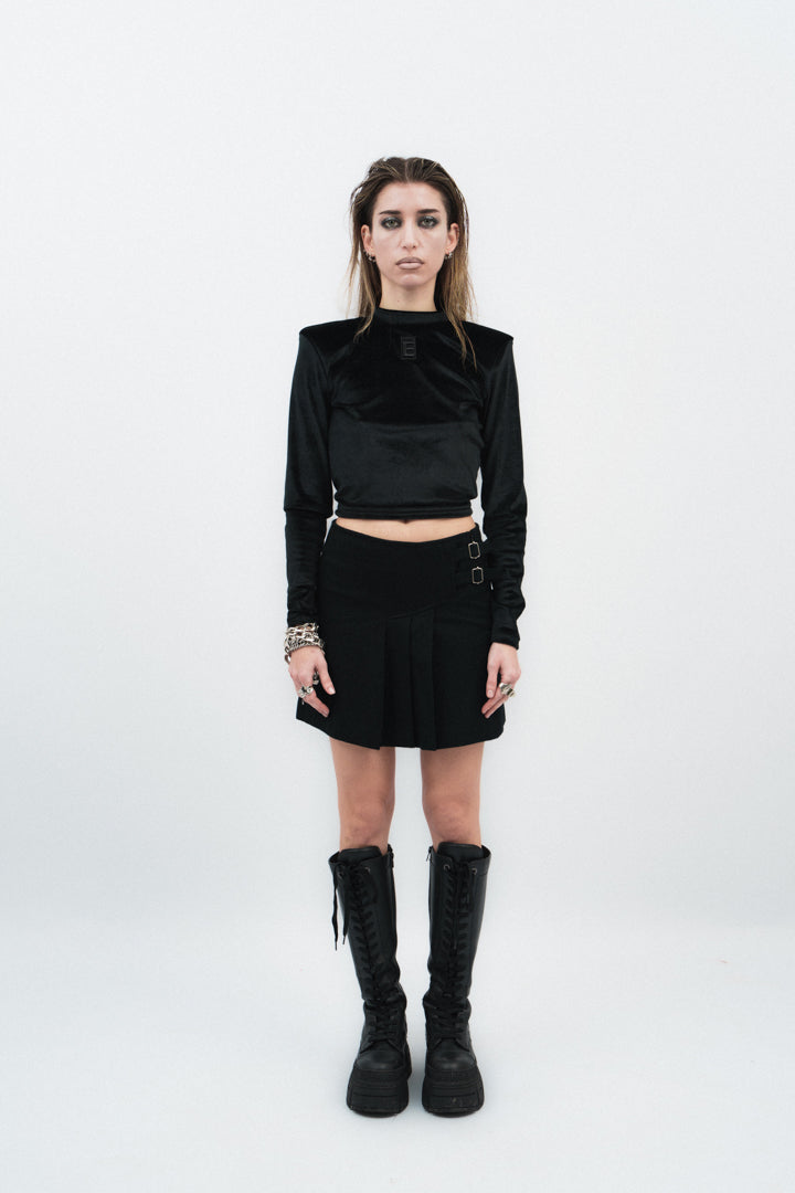 - Longsleeve velour crewneck Croptop with shoulder pads